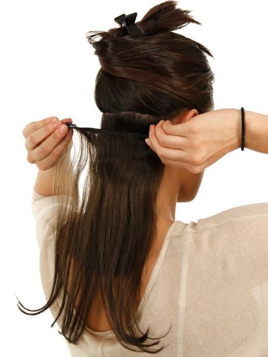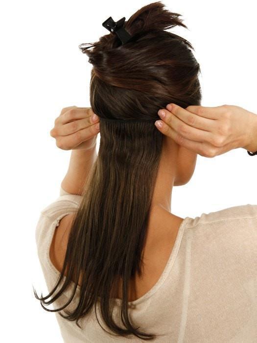 This 12" eight-piece clip in human hair extensions kit adds natural-looking length. volume and color to hair in minutes. Heat style to create your perfect look.