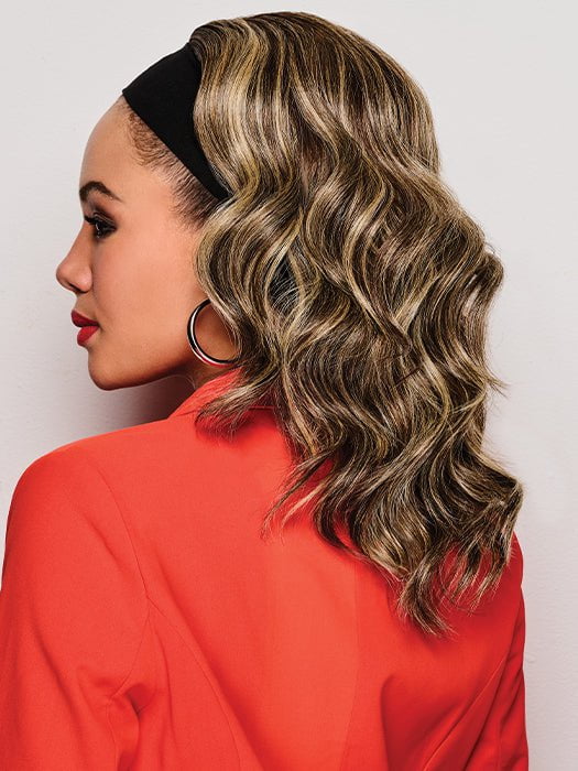 18" Wavy Waves Headband Wig by Kim Kimble gives you the perfect slip-on-and-go style! This gorgeous headband wig features long. layered hair and romantic loose waves. The synthetic hair is made with Tru2Life heat friendly fiber for versatile styling.
