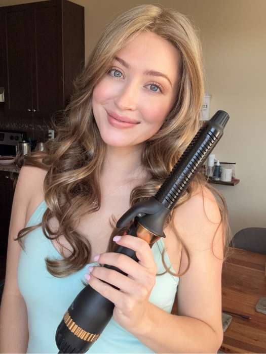 - Interchangeable attachments: Round Volume Brush. Curling Wand. and Oval Smoothing Brush