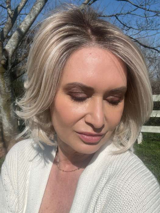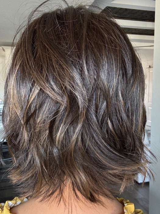 Alicante by Belle Tress is from the City Collection and features a medium bob with soft curls and subtle layers toward the bottom. Crafted with heat-friendly synthetic fiber. this light-density wig gets its natural appearance from the extended lace front and side monofilament part. Also available in Oyster Bay a trending new color by Belle Tress. Shop another popular style in Oyster Gray.
