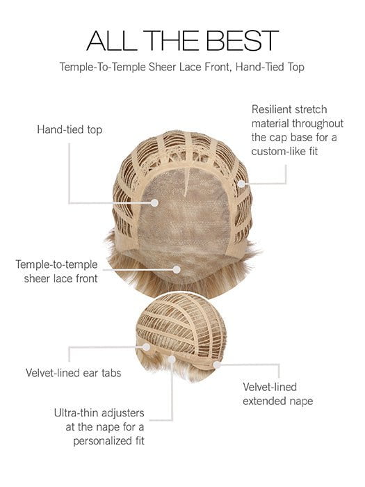 True to its name. All The Best will have you feeling your very best every time you wear it. This cut is chic and transitional. easy to dress up thanks in part to its hand-tied top. The delicate net lining on this lace front wig ensures it will feel comfortable against your scalp with an undetectable natural-looking hairline. It's easy to style to your personal preferences. fluff up with a comb or simply shake out and wear!