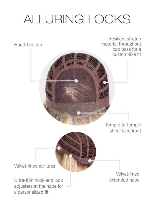 Alluring Locks by Gabor gives you long. luxurious locks of subtle layers and undone waves that fall past the shoulders. The hair is made with Tru2Life heat friendly synthetic fiber for versatile styling. The comfort cap features a monofilament part and a hand-tied top for natural density. The temple-to-temple lace front also gives you a realistic hairline.