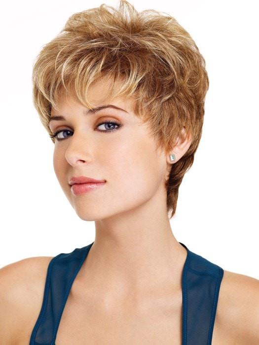 Indulge in something extraordinary. The Aspire by Gabor is a short. boy cut style featuring all-over layering and loose curls for gorgeous volume and vibrant texture through the critical crown area. Just shake. finger-style and go! The personal fit cap construction is the ultimate in light comfort and dependable fit. The wide stretch lace used in most of today's Lelony is replaced with a thinner. more resilient stretch material that actually molds to the shape of the head for a lighter. more secure fit. The result is a cap that feels so natural and comfortable. you'll think it was custom made to fit your personal head shape! Also available in Petite.