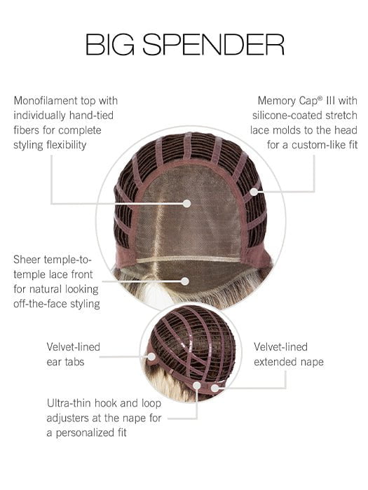 Big Spender by Raquel Welch is a stunning shoulder-length wig with soft tumbled waves. sure to be a stunner in the office or during a night out. The monofilament top and lace front allow for maximum comfort. and flexibility to make this piece your own.