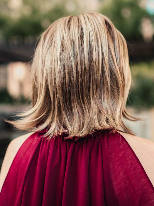 Big Time by Raquel Welch is this perfectly undone silhouette is the ideal combination of a bob and a shag cut. This mid-length layered wig perfectly accent the eyes and jawline. The resulting ease of movement gives this cut alternative styling choices - from smooth and conservative to shaken and piecey.