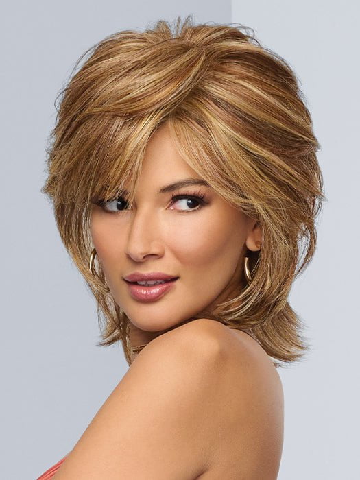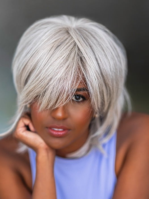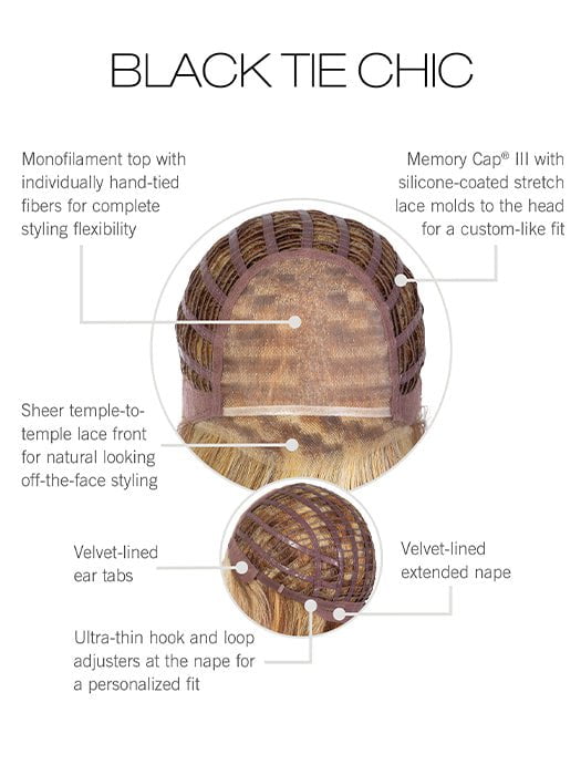 Black Tie Chic by Raquel Welch is a modern cut shag with gorgeous layering and volume. Worn formal or casual. this wig will make sure you are always ready. The heat-friendly fiber. monofilament top. and lace front allow you to wear this wig as you please and switch the part anytime!