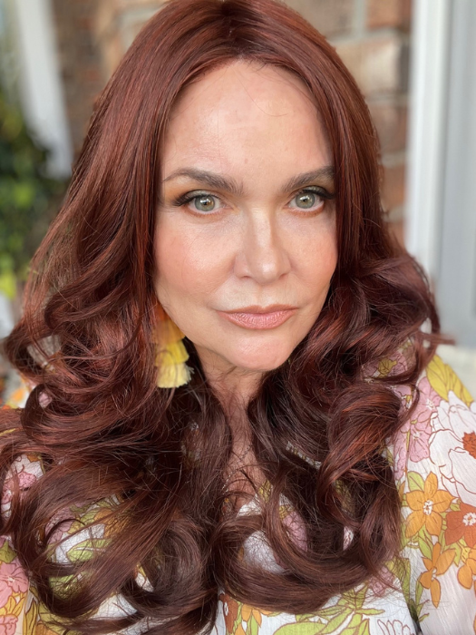 Brianna by Envy is a long lace front feminine wavy style. The long layered curl pattern is more relaxed at the crown and tighter toward the bottom for a modern silhouette. Soft long bangs compliment the loose beachy waves perfectly. Lace front creates the appearance of a natural hairline and allows for styling away from the face. A monofilament top gives the appearance of natural hair growth from the scalp which adds to the natural look and believably of Brianna. Watch Envy Brianna video review for more details.