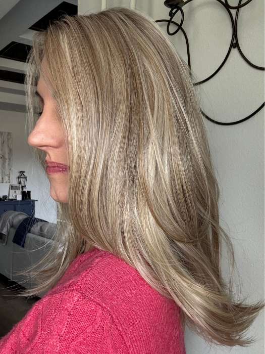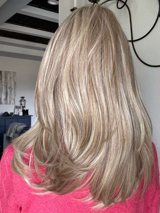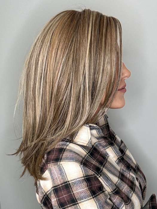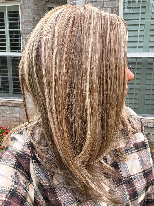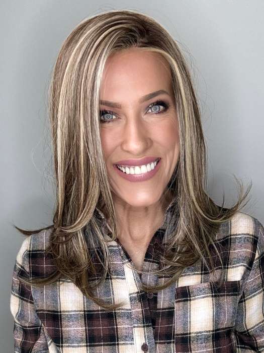 Celine by Belle Tress will steal your heart with its long. layered hairstyle that falls slightly past the shoulders. Part of their Lux Collection. the hand tied cap has a lace front for a discreet hairline. The heat friendly synthetic fiber gives you endless styling options.