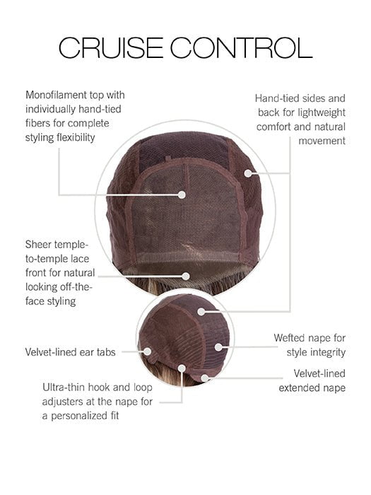 Cruise Control by Raquel Welch dresses up your look with its medium bob haircut. Part of the Signature Collection. this heat friendly synthetic wig has subtle layering at the bottom to create its sculpted shape while offering a lightweight feel. The hand tied monofilament top and extended lace front give the appearance of natural hair growth.