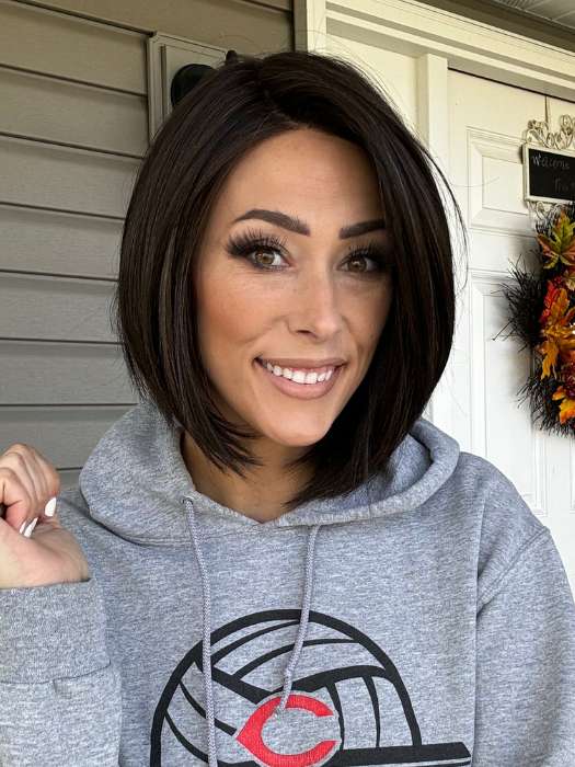 Euro Chic by TressAllure is a medium asymmetrical bob with sleek hair that is precisely cut into face-flattering layers. This light-density wig is crafted with TressAllure's signature Look Fabulous Realistic lite fiber that mimics the natural look and movement of fine human hair. The breathable cap has a sheer comfort mono top for multidirectional parting and a lace front for a realistic hairline.