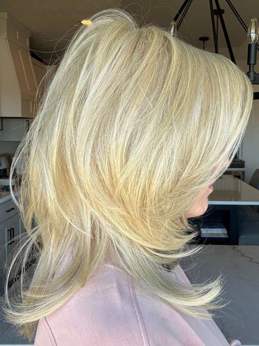 The Feathered Bob Wig by TressAllure is a mid-length style with soft sweeping feathered layers that fall below the shoulder for a surprisingly light and long style.