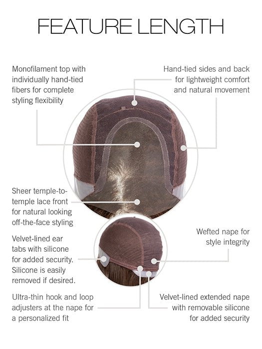 Feature Length by Raquel Welch offers a timeless hairstyle. perfect for those seeking a glamorous “leading lady” look. The long. layered strands cascade in soft waves down to mid-back. creating an effortlessly elegant style. Crafted with HairUWear's exclusive new FeatherLite Fiber. these heat-friendly synthetic fibers feature a hollow core. providing a remarkably lightweight feel. Not only is this fiber lighter than human hair. but it also retains its shape for lasting wear.