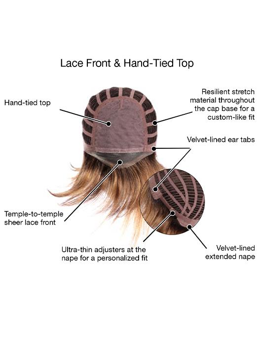 - Temple-To-Temple Sheer Lace Front - Virtually invisible sheer lace front for a natural looking hairline and amazing off-the-face styling versatility.