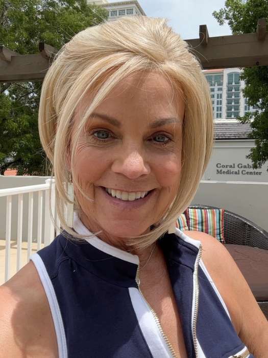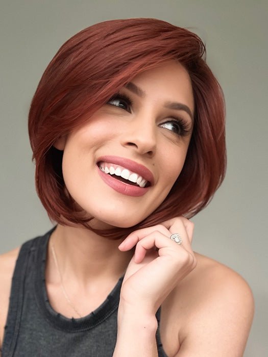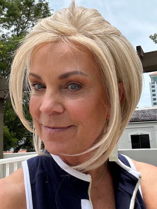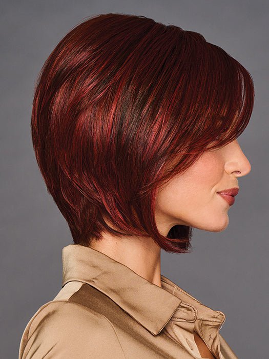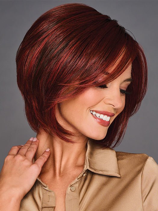 Glamorize Always from the Designer Series by Gabor embraces glamour and sophistication with this softly structured bob that features a voluminous crown and elongated face-framing strands. This versatile hairstyle can be tucked behind the ears or draped across the face. The multi-textured ends. accompanied by a side-swept bang. create a dramatic silhouette that is both easily styled and timelessly graceful.