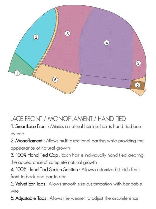 The SmartLace Front mimics a natural hairline and each hair is hand tied one by one. The synthetic hair is pre-styled with smooth layers and is ready-to-wear out of the box.