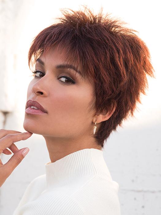 BEST SELLER | Lizzy by Rene of Paris is a short wig with spiky shake-n-go" style. It features razor-finished layers for vibrant texture and easy styling. Just spike it up and go! It can also be smoothed down with styling product for a sleeker look. Lizzy also has wispy bangs. and plenty of built-in volume and coverage around the hairline. This layered wig is longer on the top and shorter towards the tapered neckline. This is a style with a lot of flair and versatility. Also available in gray colors. beautiful shades of grey!