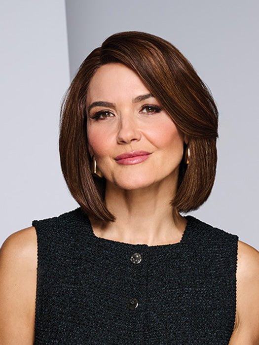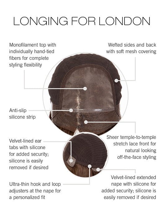 Longing for London by Raquel Welch from the Black Label Collection presents a classic sleek “lob” or long bob with subtle layers in the front. The graduated nape rounds out the back. Designed with 100% human hair. this medium-length wig has a luxuriously soft feel. Great for everyday wear and special occasions!