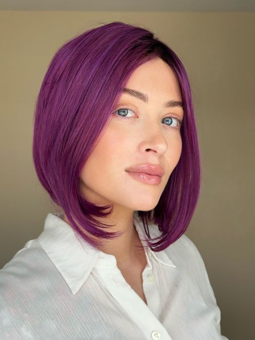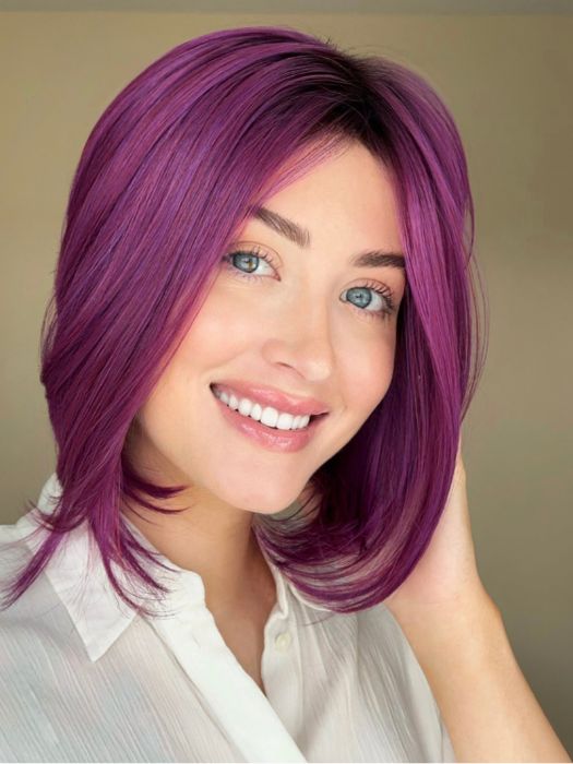 Midnight Berry by Hairdo | Fantasy meets fashion with this multidimensional. purple berry colored wig. A touch of depth at the root gets you this season's hottest hair color without spending hours at the salon. Look and feel cool in this open wefted cap that is comfortable and adjustable. Change up this beautiful synthetic bob wig and add some waves or make it super straight to show off the angles in this cut.
