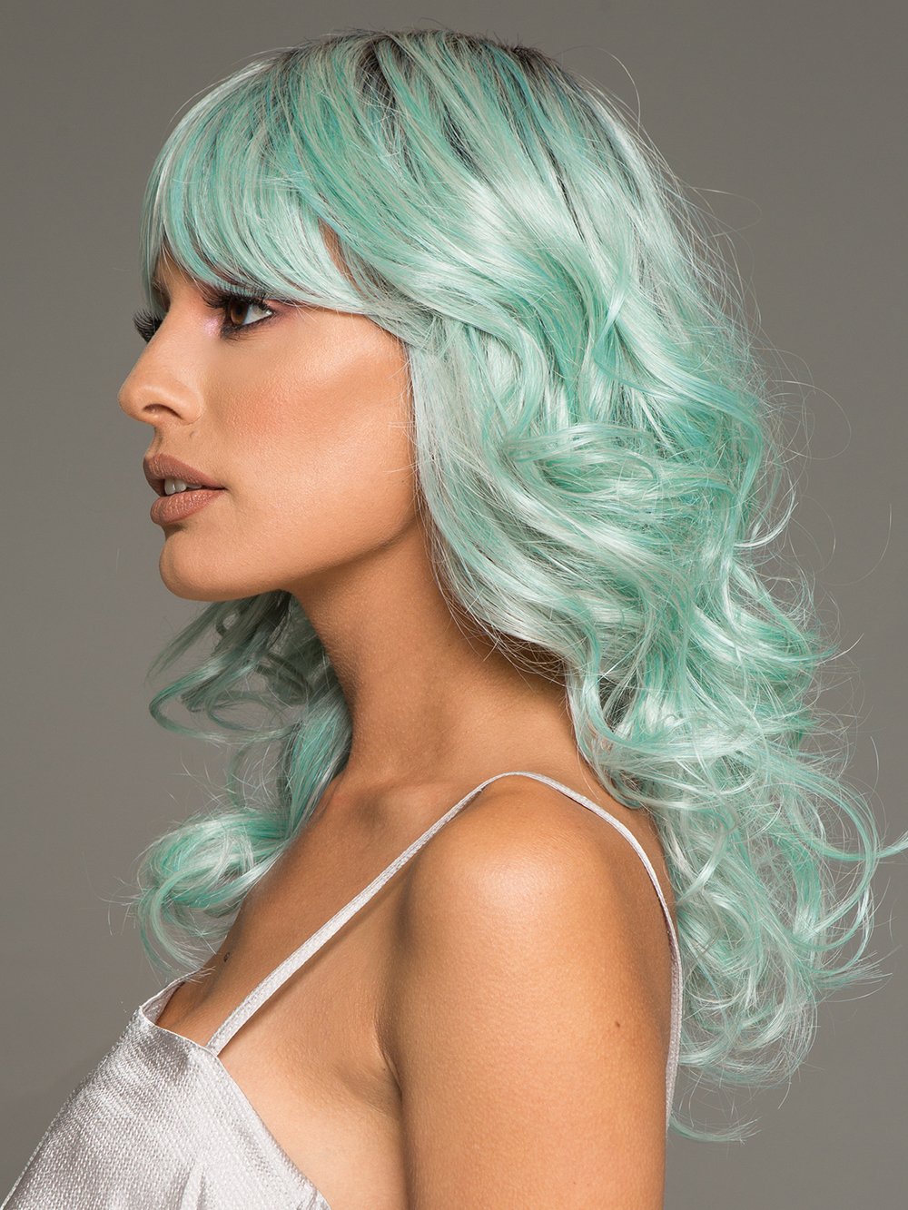 From the runways to salons and now to your home! Mint To Be by hairdo is one of the most sought after rooted hair colors and can be yours without the bleaching and stripping. This colored wig it's ready to wear so try it out for a day. a night or as long as your mint mood desires. The adjustable cap is made to fit comfortably and feels light and cool. And the Tru2Life® heat-friendly synthetic hair gives you styling versatility. If you weren't getting so many compliments. you'd forget you had it on!