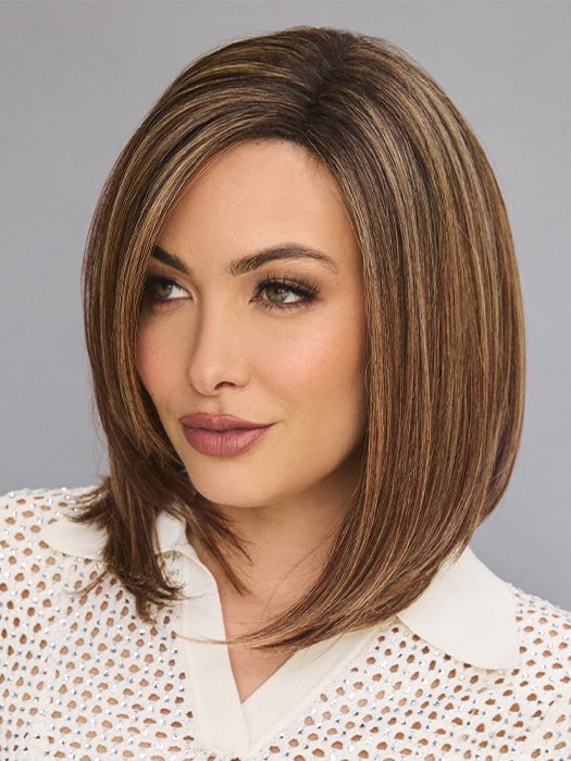 River by Rene of Paris is part of their Alexander Couture Collection. This medium-length bob wig features a sleek. layered haircut that beautifully frames the face. The heat friendly synthetic fiber gives you the option to create new and fabulous looks. The lace front paired with the partial monofilament base gives this ready-to-wear wig its natural look.