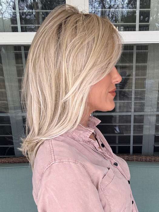 Seville by Belle Tress is one of their standout styles from the iconic City Collection. Crafted with heat friendly synthetic fiber. the hair is cut into soft layers that strategically frame the face. The wispy. side-swept bangs create a trendy look. The extended lace front allows you to create off-the-face styles while the wide monofilament mimics the look of hair growth.